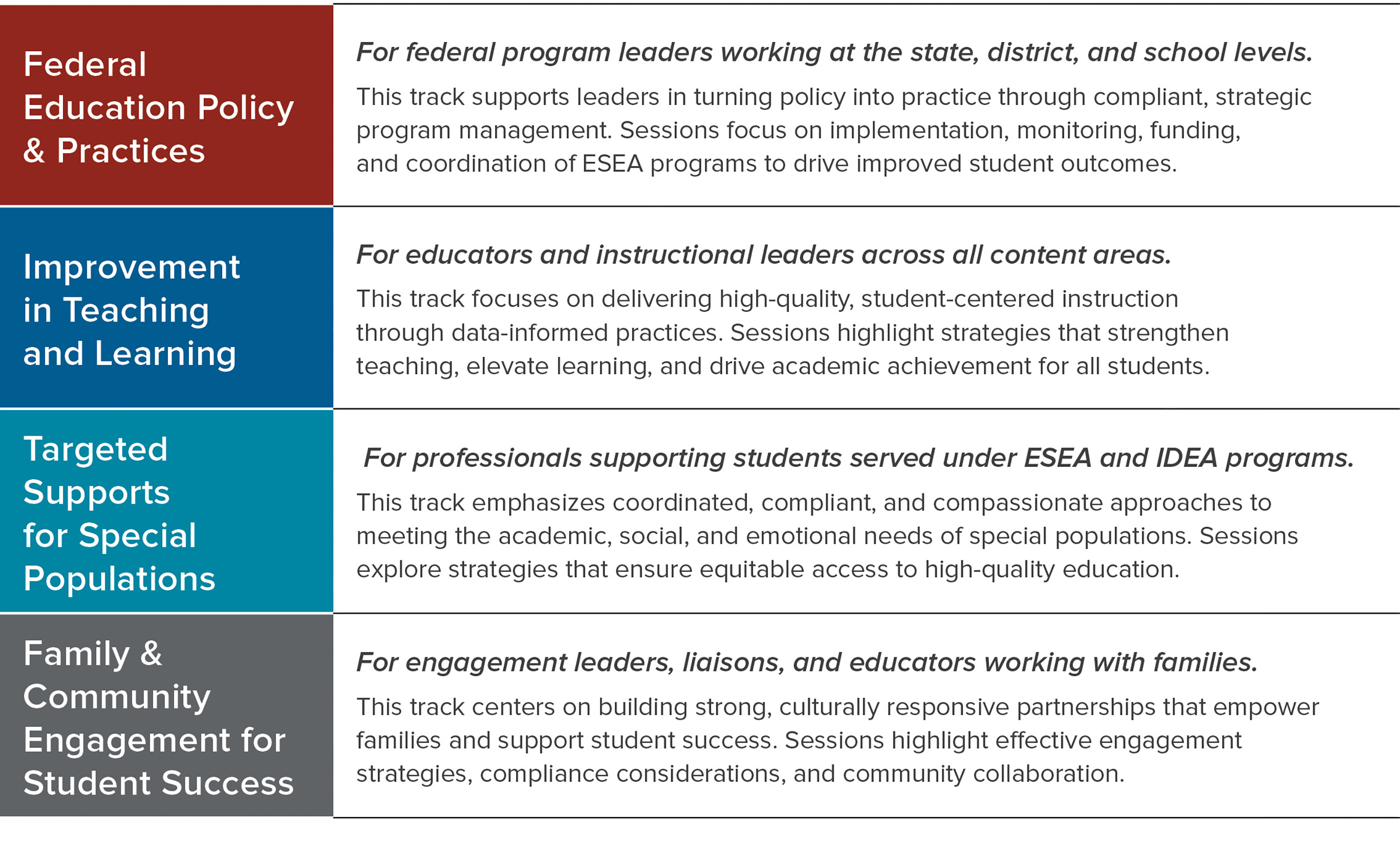 NEW! ESEA Conference Tracks