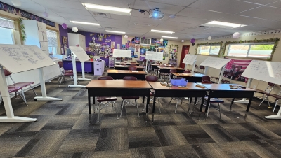 The Thinking Desk is a one-of-a-kind classroom innovation created by an educator and proudly operated as a woman-owned small business. Its patented convertible design functions as both a standing workspace and a magnetic dry-erase surface, giving students space to think, collaborate, and create. Available exclusively through The Thinking Desk, this unique piece transforms traditional classrooms into dynamic environments where thinking comes to life.